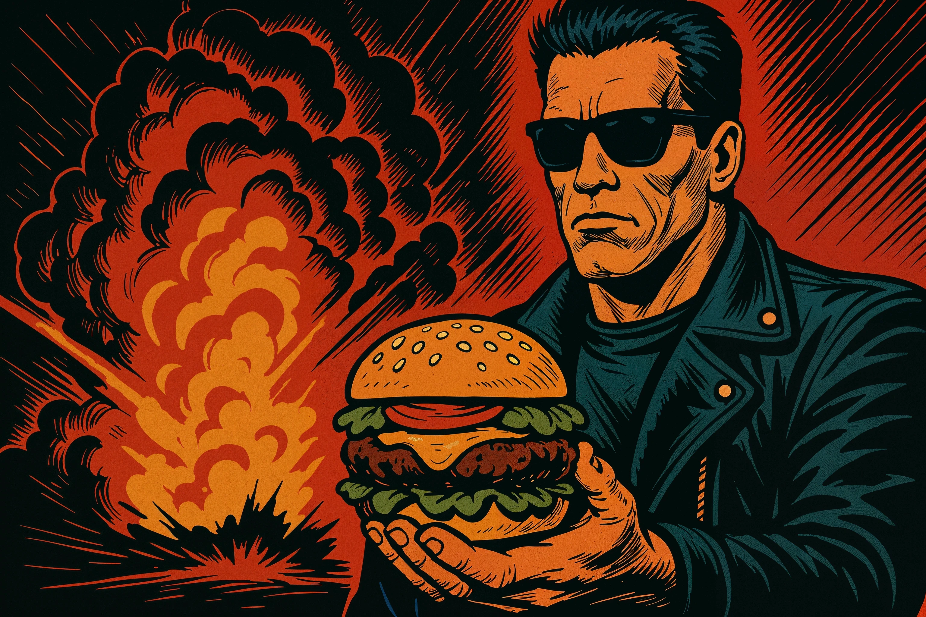 I started by building a moodboard that pulled from comic books, 90s action films, food trucks, military gear, and fast food nostalgia.