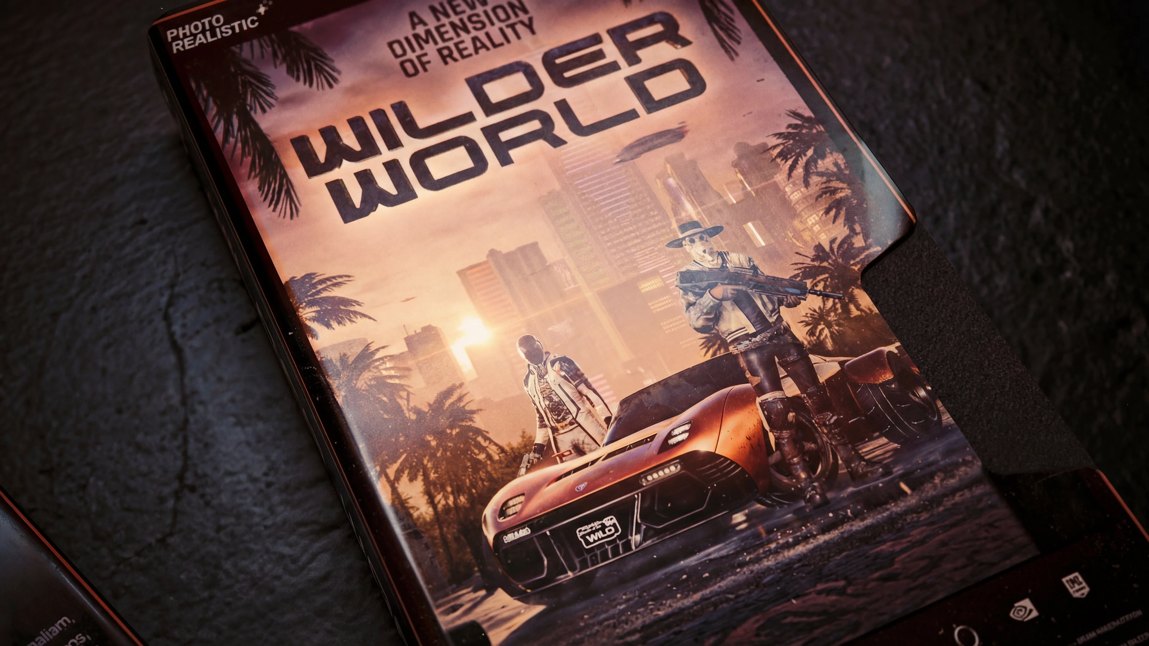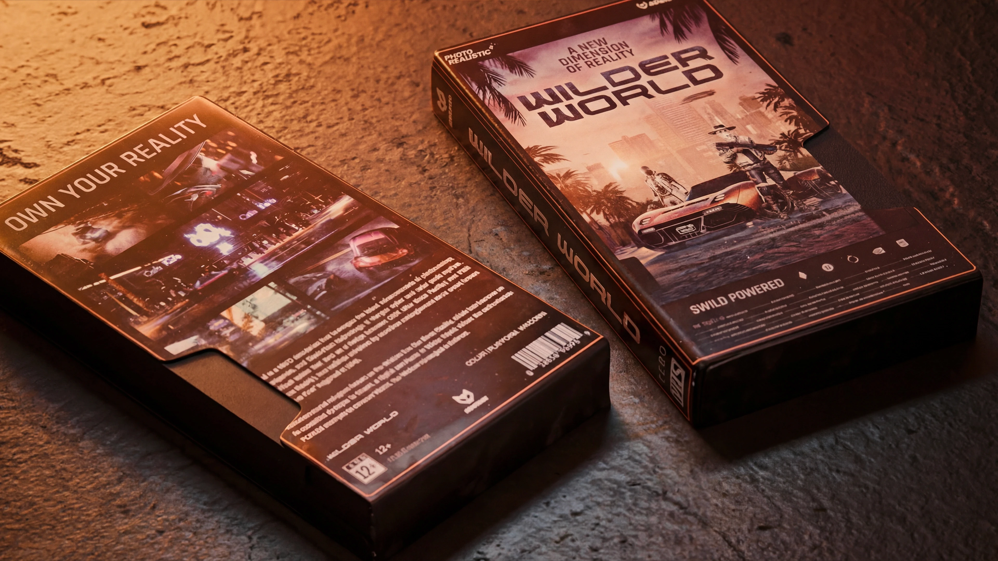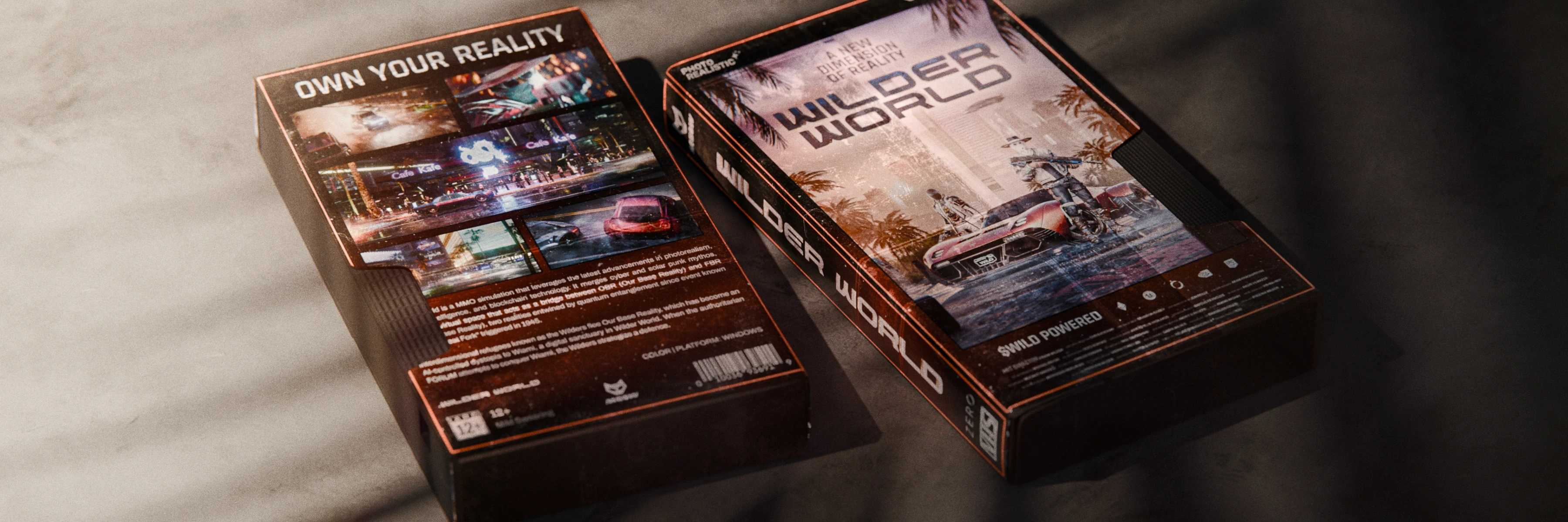 The design draws inspiration from old-school VHS sleeves with worn textures, spine typography, and cinematic framing, while keeping Wilder World’s futuristic DNA intact.